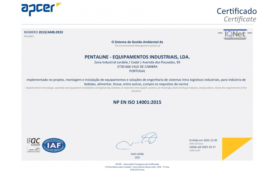 Seeking to achieve our strategic goals in terms of organic growth, based on the provision of an increasingly excellent service which meets our customer’s requirements, Pentaline® designed the Integrated Management System based on ISO9001:2015 (Quality Management System), ISO14001:2015 (Environmental Management System), and ISO45001:2018 (Occupational Health and Safety Management System).